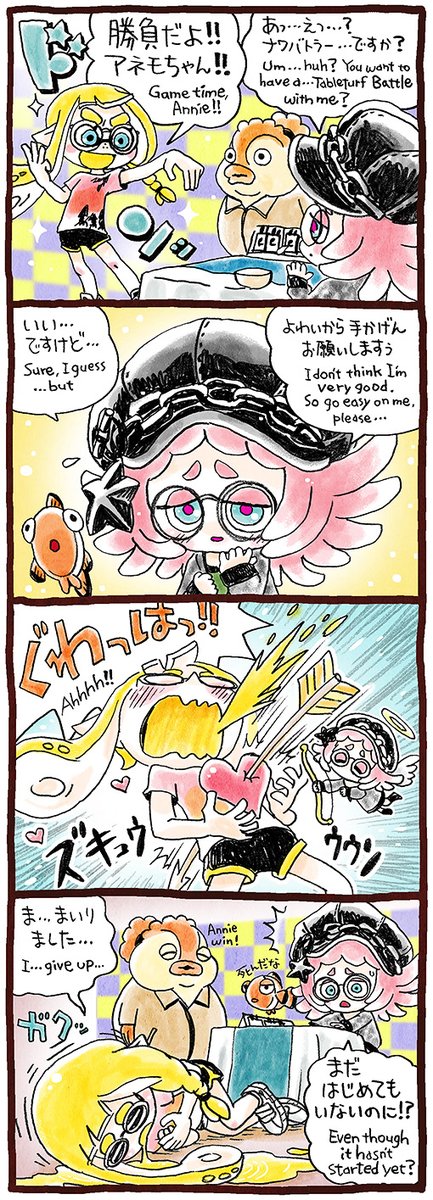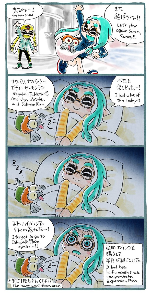 最後のオチを追加して、ハイカラシティ編(アネモちゃん編?)まとめてアップしました。 4枚目の英訳はコメント欄で。 I will note the English translation of the fourth one in the comments. #スプラトゥーン3 #Splatoon3 #1日1グラッシーちゃん