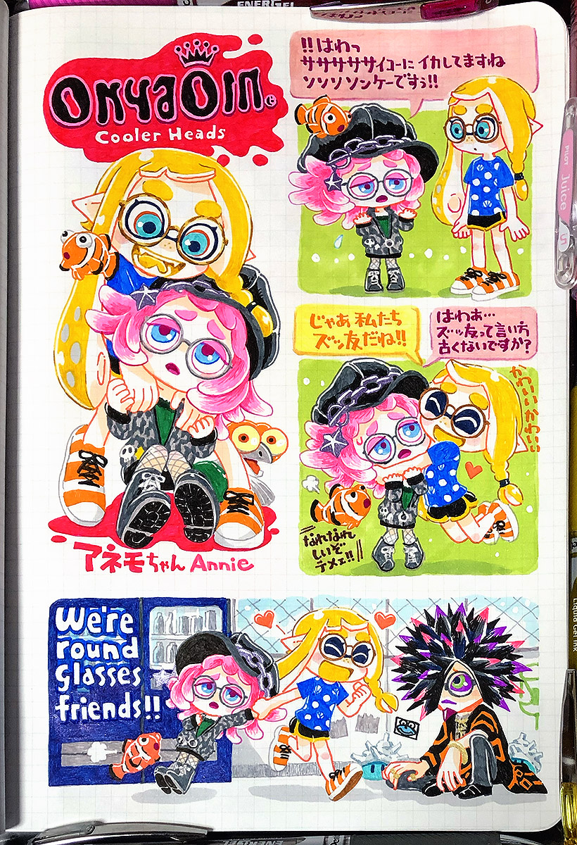 アネモちゃんがイカすって言うから… 英訳こんな感じ?↓ Annie: “You are so cool. I admire you.” Glassey: “Don't have to flatter me. We are best friends!” Annie: “We just met....” Moe: “Hey! You're so familiar!” #スプラトゥーン3 #Splatoon3 #1日1グラッシーちゃん
