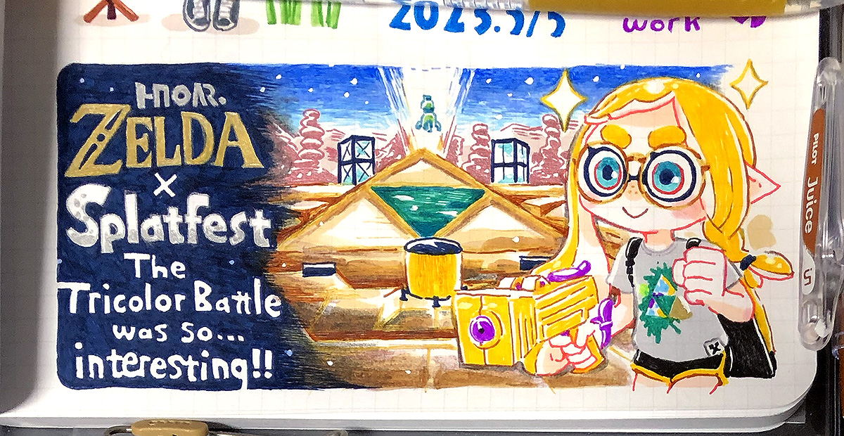 今更ですけど… ゼルダフェスのトリカラバトル、あのステージすごい楽しかった!今回は絵も描かずにずーっと遊び尽くしてました😄 運営様、無理を言いますが、どうか今後も毎回特設ステージ作って欲しいな…! #スプラトゥーン3 #Splatoon3 #今日のグラッシーちゃん