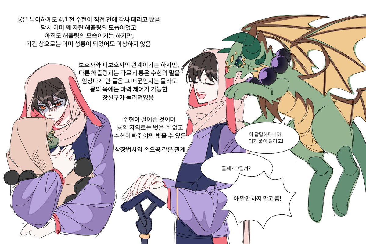 드래곤 랃이랑 드래곤 라이더 뜰로 AU...이름도 못 붙였고 아직 바다조만 그리긴 했는데 나름 뜰팁 에유입니다 다른 멤 분들도 곧 그려올 것 같아요