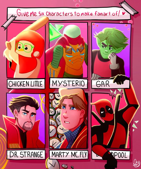 #SIXFANARTS #SixFanartsChallenge Llegando tarde a twitter como siempre 😎💖 JSGBJKDBGJS eSPErO les guste!!<3 Fue requete divertido de hacer esta variedad de personajes! <3 chICkEN lITTLE y dR sTRanGE en UNA miSMA hoJA? JJAJAKJSKS PERDOn YESO Te deseo unbellodiA!!!<3 >:D