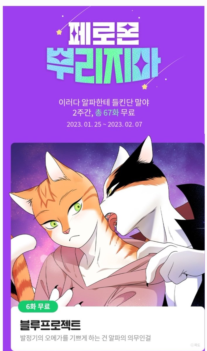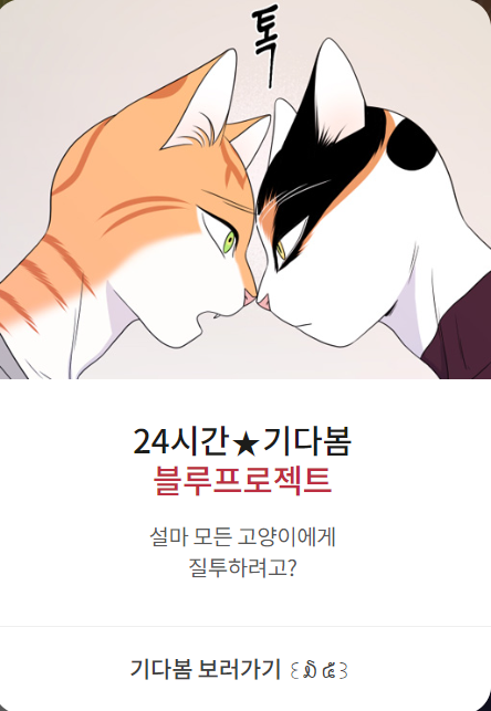 블루프로젝트가 7/18~10/18동안 24시간 기다봄이벤트를 합니다!!! :D 몰아볼까~ 생각하셨다면 지금이 바로 기회!!! 귀여운 치즈냥과 삼색냥의 액션꽁냥냥🐱러브가 궁금하시다면 바로 갑시다아! bomtoon.com/comic/ep_list/…