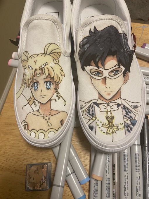 Finished sailor moon pair struggled with this commission but I think it looks nice 😁😁😁 #SailorMoonCrystal #SailorMoonEternal #sailormoon #sailormoonredraw #SailorMoon #art #vans #copic