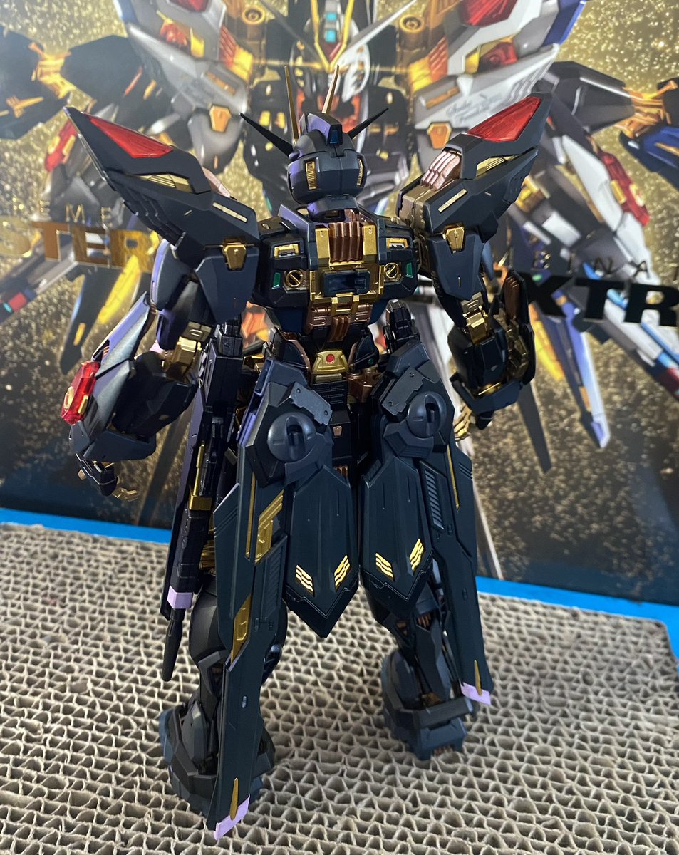 我慢できず外装も付けてしまった💦 やっぱりゴールドには黒が合う☺️ #ガンプラ #ガンプラ好きな人たちと繋がりたい #MGEXストライクフリーダム #ガンプラの画像を貼るとRTされると聞いて