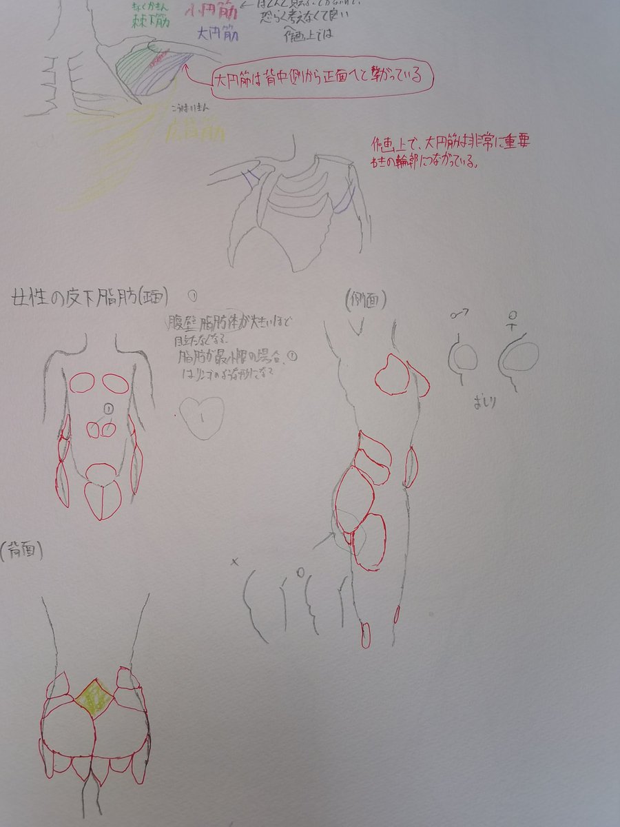 女性らしい体を描きたいと思って、皮下脂肪を勉強しました! 肩の骨の動きも理解できて、少しずつ自分の絵が良くなれば嬉しい! もっと上手くなりたい、どんどん進んでいきましょう #絵描きさんと繋がりたい