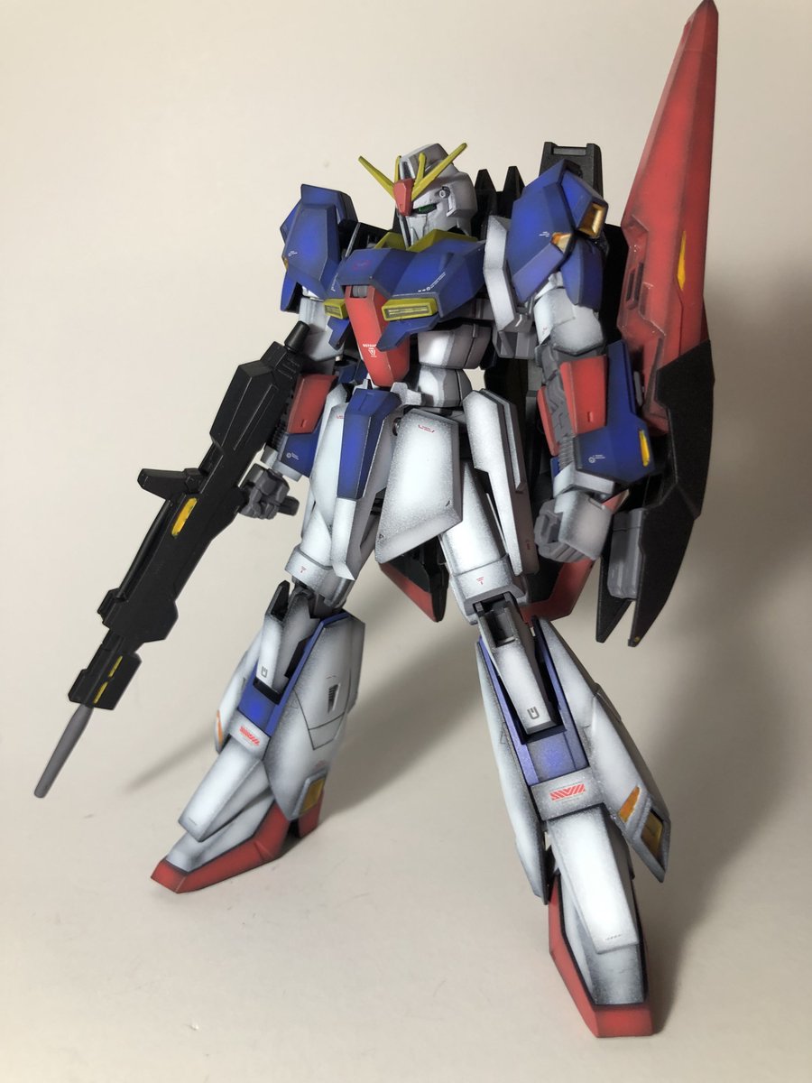 HG Zガンダムリバイブ完成しました。初挑戦のグラデーション塗装は上々。ただ、ラッカー塗料の筆塗り部分塗装が難しくかなりお見苦しい状態に笑 次からそういう部分はエナメル塗料等を使おうと思います。 #ガンプラ好きと繋がりたい #ガンプラの画像貼るとRTされると聞いて