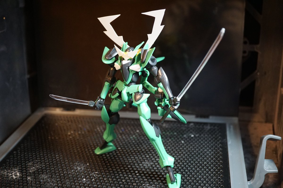 スサノオブレイブ?完成しました! 今回はブレイブ量産機をベースに、プラ板とパテを使ったスクラッチに初挑戦しました。 変形ギミックも課題だったのですが、剣を機首にする部分と、ツノの折り畳みがうまくハマったかなと思います。 #ガンプラ #ガンプラはどんな自由な発想で作ってもいいんだ