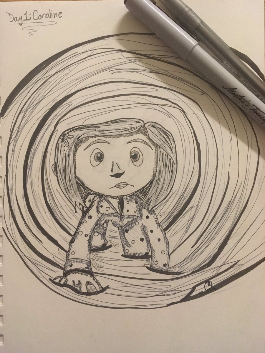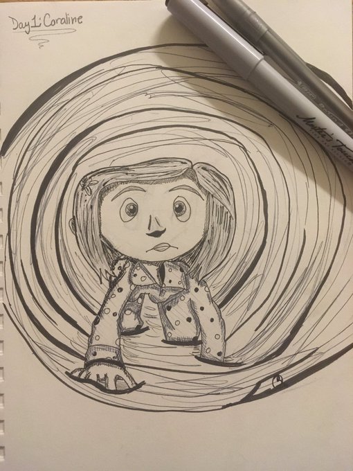 Here is Day 4 of Inktober! And to end the Coraline trilogy, here is Coraline’s Doll. Stay tuned to see the next stop-motion movie! 🖋 #inktober2020 #coralinedoll #coraline