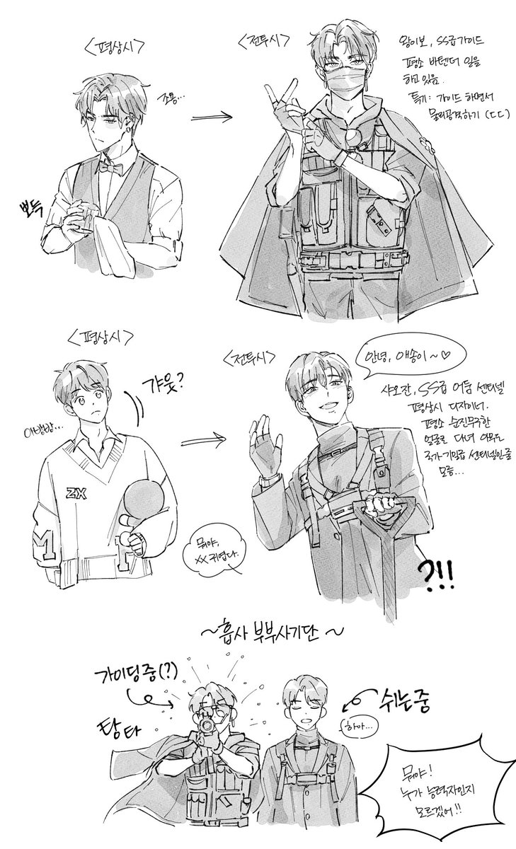 가이드 센티넬 왕샤오 SS 사기급 둘이 파트너인데 국가소속에서 벗어나서 개인사무소 차려서 의뢰받고 사는거 보고싶었다ㅋㅎㅋㅎㅋㅎ 근데 이제 적도 많고 탈도 많은... 평소에 눈에 잘 안 띔 왜냐 전투때랑 너무 분위기가 달라서🙄