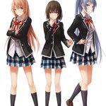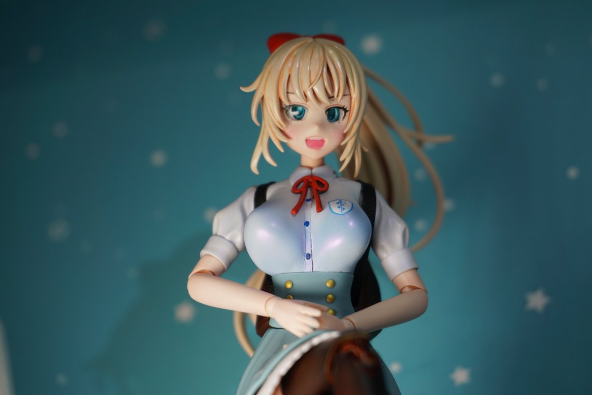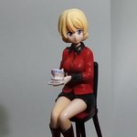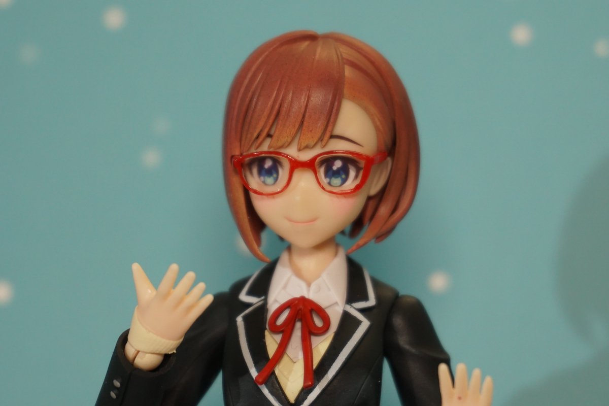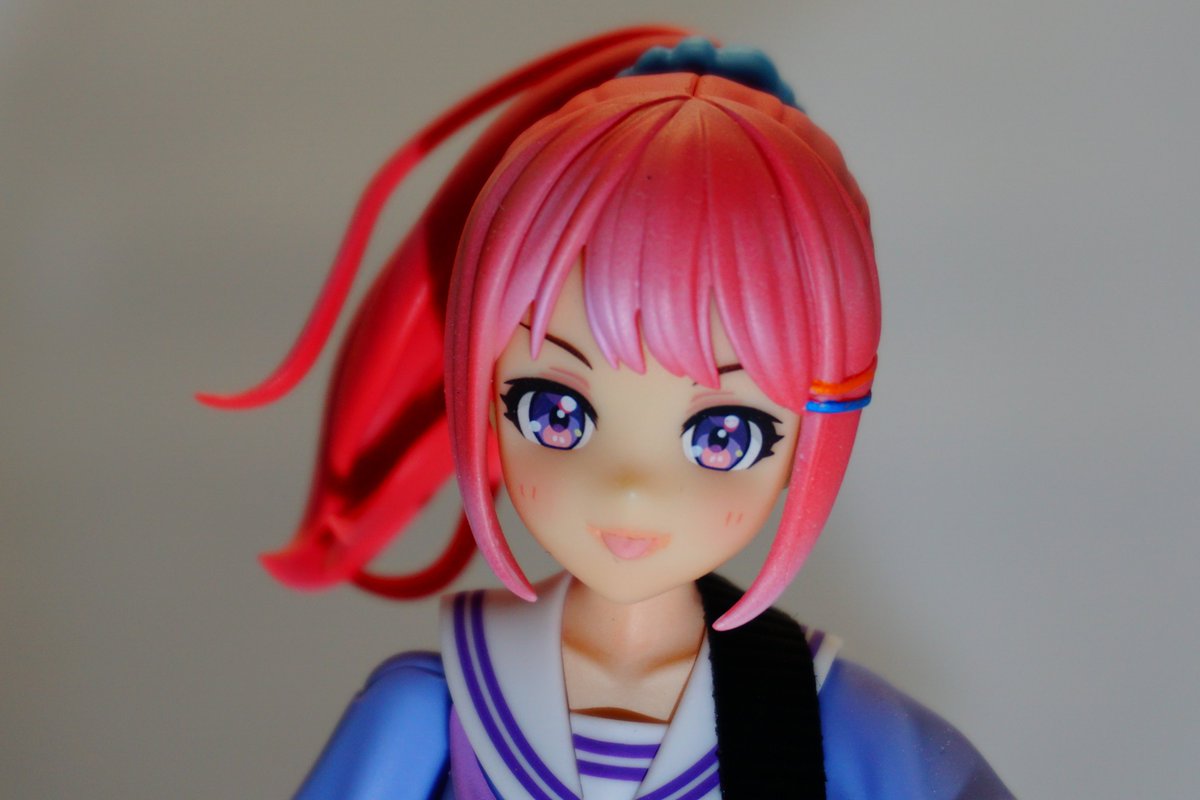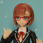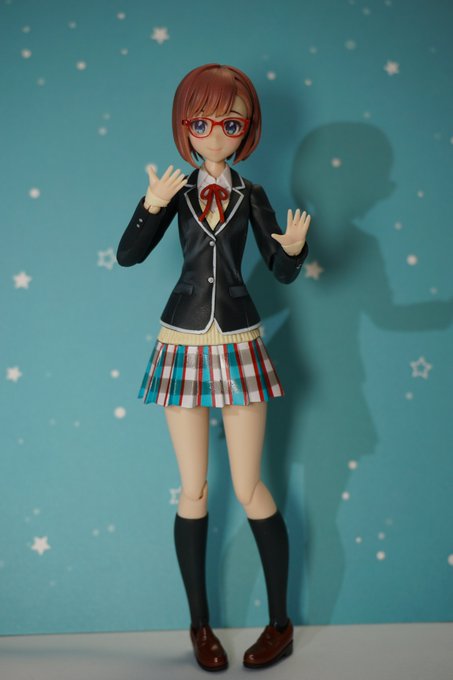 #今月作ったプラモ晒そうぜ ② 創彩少女庭園 小鳥遊暦 ブレザーなのでスカートをチェックにしようと アニメキャラをいろいろ調査 イメージにすっぽりハマったのが俺ガイルの海老名姫菜 どう塗ればチェックに見えるか考え、 白と赤ラインは基本色、青とグレイをクリアで塗装。