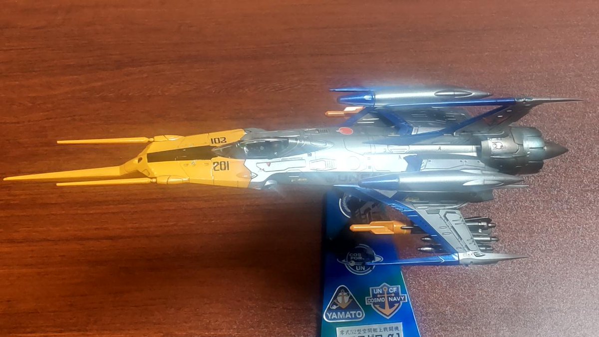 #今月作ったプラモ晒そうぜ と言いながら2月の完成品② バンダイ1/72 コスモゼロα2 (山本機) とにかく銀だ銀色に塗るんだ。 でも銀色イッパイあってどれ塗ればいいかわかんない で、いろんな銀色使いました。 今後の参考のためのテストピース扱いです。 ↓続く