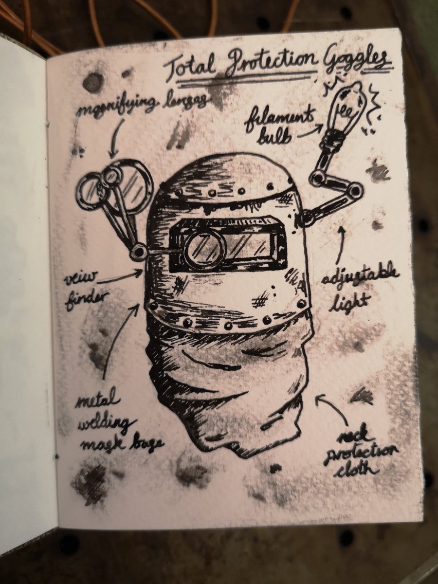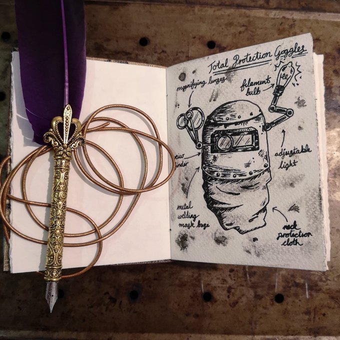 Day 3 of my own Steampunk prompts. Perilla the inventor likes to overthink things...things like safety goggles! So she created these 😅 #steampunkgoggles #Inktober #inkpenart #steamtober #InkDrawing