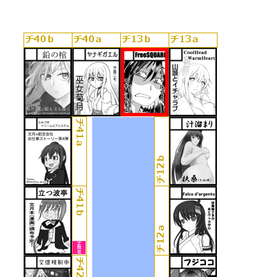 ◎あなたのサークル「FreeSQUARE」は、日曜日 東地区“チ”ブロック-13b に配置されました。 なんとなく配置番号でイヤな予感はしていたのだがー…。 マジでお誕生日席じゃねーか!? うわー…仕事で行けるかわかんねぇのにこんな良い席を…。 行きてぇ…なんとかインチキして当日参加したい…。 twitter.com/weekend_fs/sta…