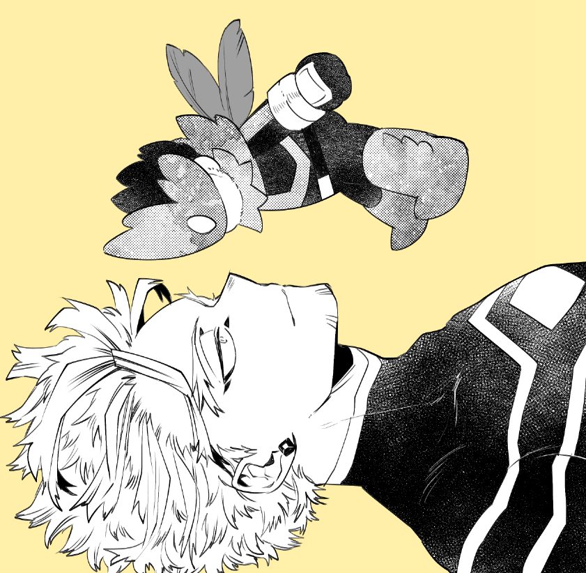 新刊サンプルです。表紙はトレーシングペーパー白刷り。バタフライ効果の話を描こうとして迷走しました。話の都合上こうなってますが🔥さんはしんでません。A5/24P(トレペ含むと28P)/400円 #0625鷹えん新刊情報