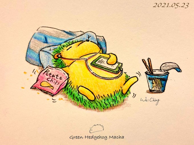 吃貨 直接肥 這是菠蘿麵包 不是芒果乾... #覺得是芒果乾的話圖直接下架 #菠蘿麵包 #hedgehog #illustration #hedgehogs #刺蝟 #ハリネズミ #插圖 #綠刺蝟麻恰 #畫 #drawing #手繪 #greenhedgehogmacha #色鉛筆