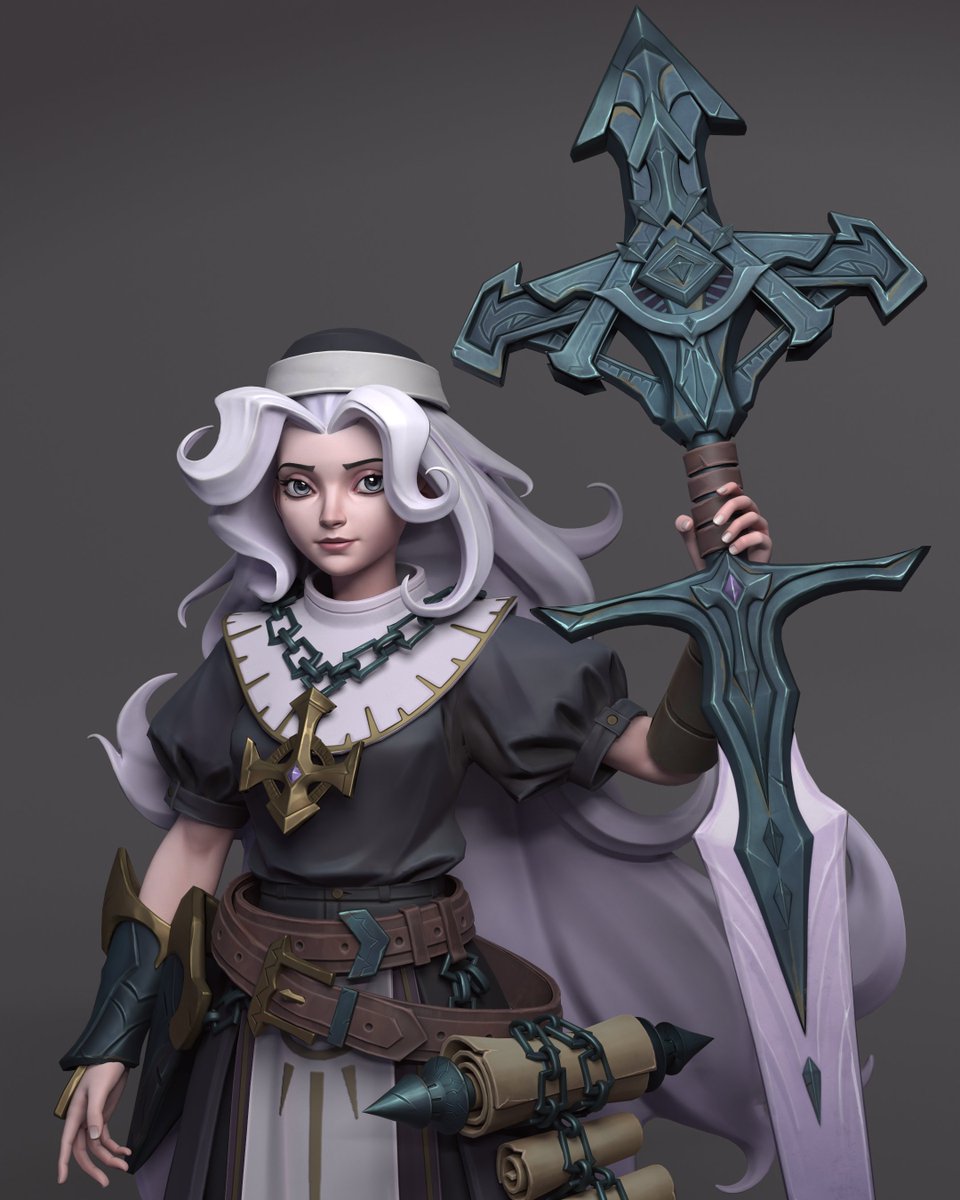 Reposting older work of mine. The Nun! Original concept by: Penpen Gao You can check out my artstation if you looking for more render of her. :) artstation.com/artwork/r9VKP6 #zbrush #stylized #characterart