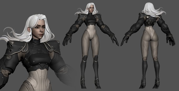Here is some render preview of my lovely character <3 Calling it done for the artstation challenge! link: artstation.com/challenges/med… #zbrush #marmosettoolbag #artstation