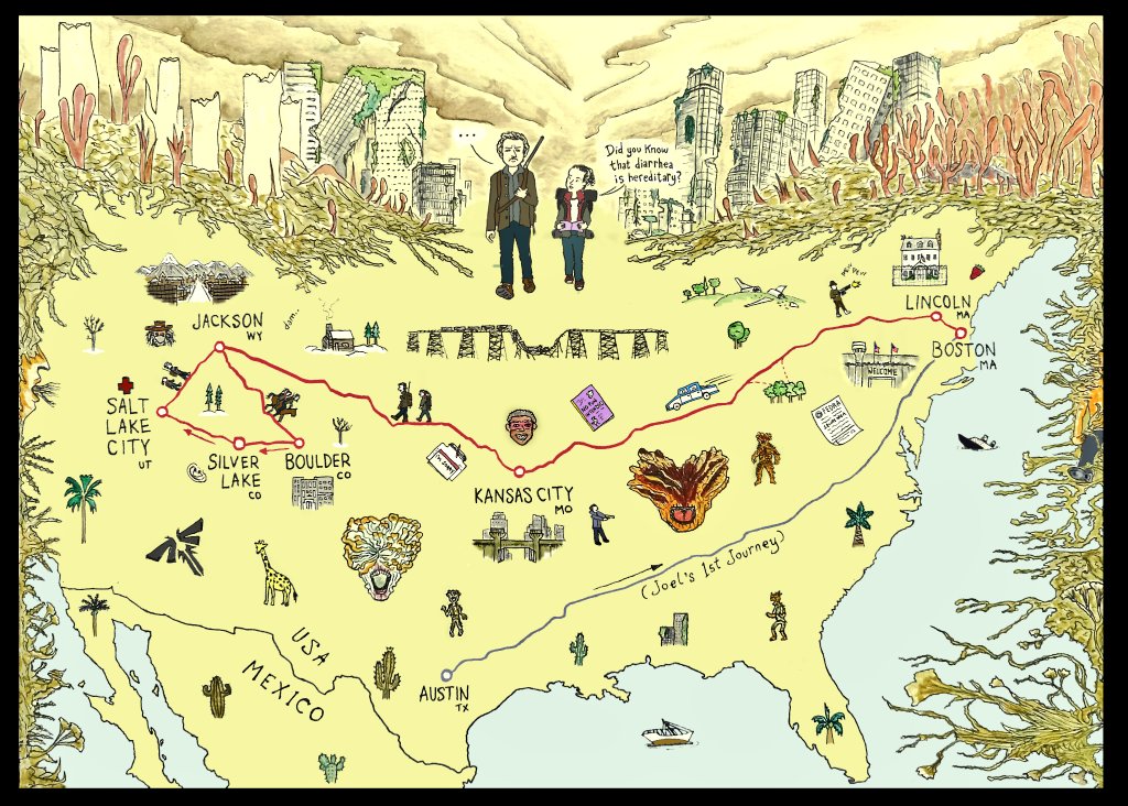 joel & ellie journey; the map pen & watercolor on paper, w/ some digital yadda yadda #thelastofus #tloufanartfriday