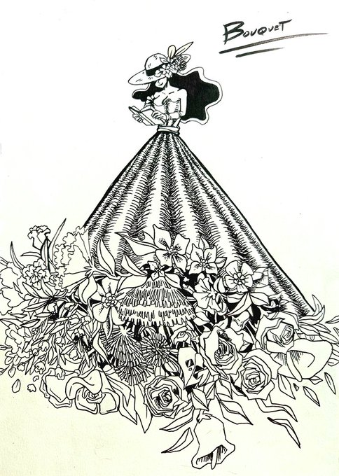 Bouquet lady, drawing on coffee shops is a nice change of pace #inktober2022 #inktober2022day6 #draweveryday
