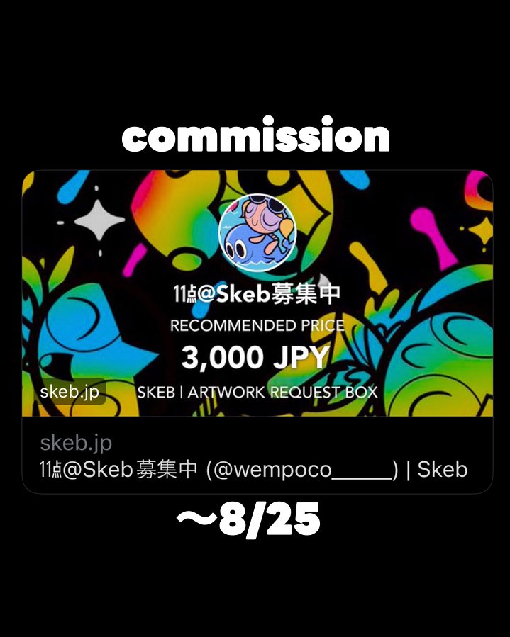 #commission #skeb I am accepting commissions until 8/25! I have reduced part of the amount! It's a little bit of a period left, but I'm looking forward to seeing you.🫶 skeb.jp/@wempoco_____