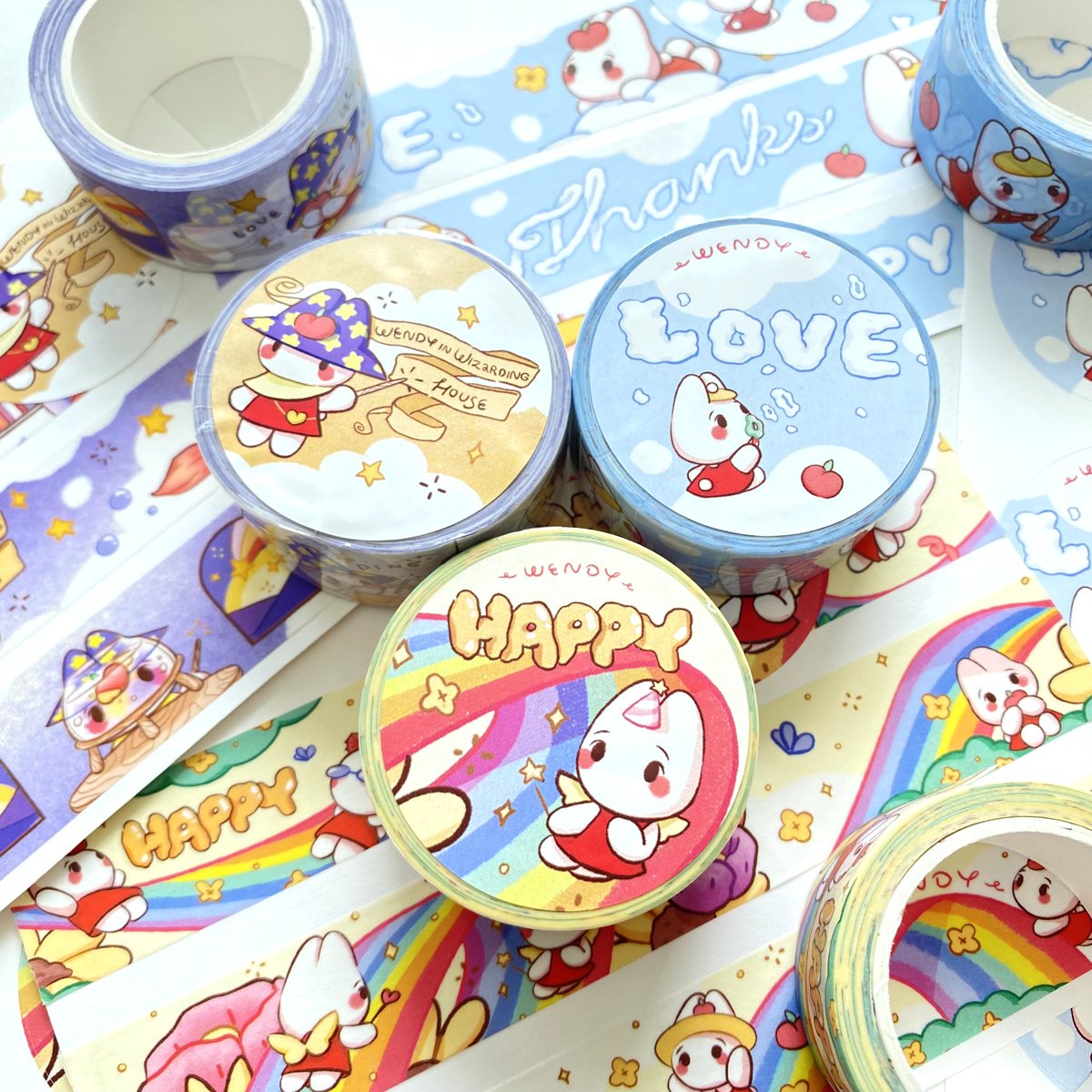 🪄 เฮอร์ไมเวนดี้เสกเทปลายใหม่ไปออกงานด้วยน้า~ ขอให้มีคนรักน้องเยอะๆ มีคนรับน้องไปเยอะๆ 🤍 เพี้ยง~ 🍑 യendy happy tape 🌈☁️ ꒰ size 2cm : 120.-/pcs ꒱ — Illust Fusion #IF7 🔖S05 ꒰📍BACC 🎟️27-28 Aug ꒱ ༘* #illustration #bunnywendyhouse #เทปตกแต่ง #เทป #เทปวาชิ