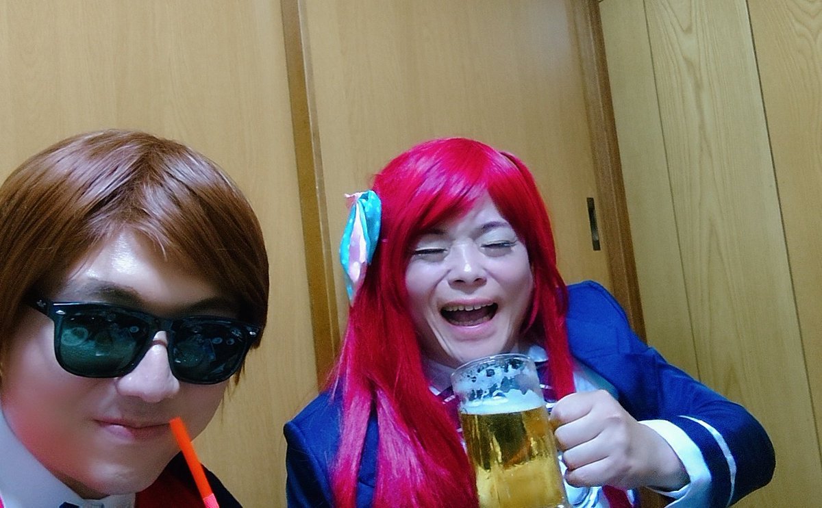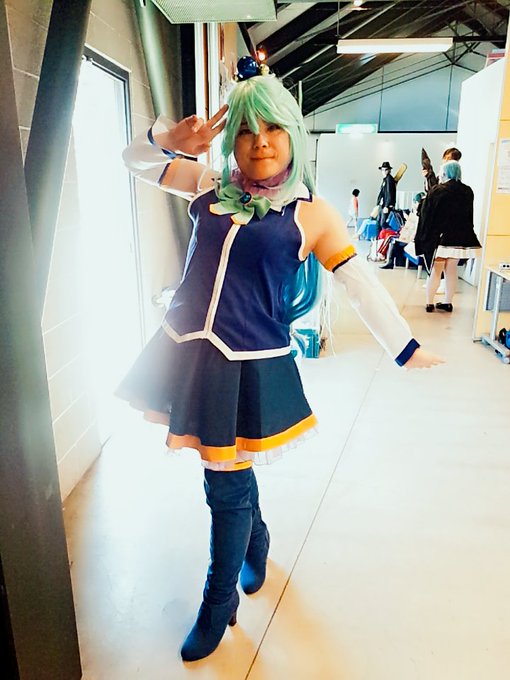 今日はこのすばのアクア様! え?博多の #エアどんたくコスプレパレード に居るんじゃないかって?細けえこたぁいいんだよ! 二枚目のシュワシュワは準備会には内緒だよ!(コミケは確か禁酒だよね) #エアコミケ #コスプレ