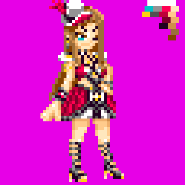 お題箱より > [スウィンギングナイト]松山久美子 #odaibako_went15370325 odaibako.net/detail/request… 描かせて頂きました!リクエストありがとうございました! こういう煌びやかな衣装をドットで描くのはシンプルに楽しい #ドット絵 #pixelart