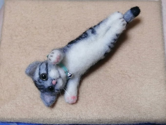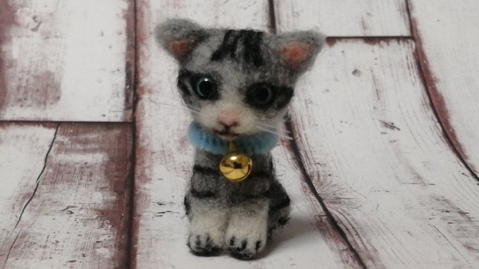 フェリシモのさくさくニードルフェルトにゃんこの会、第4弾です! キリッとした表情は難しいですね。 模様はなかなか地道な作業(´ー`A;) #羊毛フェルト #f_couturier #フェリシモ