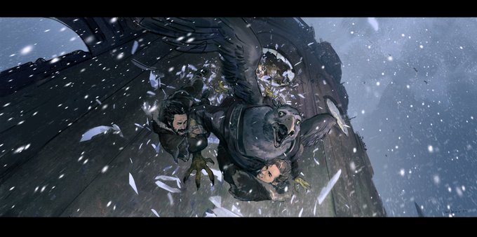 Jumping with Jarnathan keyframe illustration from pretty early in pre-production before the cast was in place, this scene just jumped right off the page when I first read it and was a blast to imagine playing out! #dndmovie #DungeonsAndDragonsHonorAmongThieves