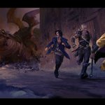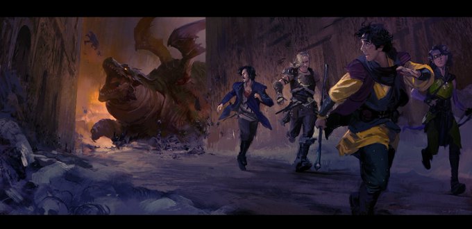 The gang running from Themberchaud! Keyframe illustration from pretty early in the process, before casting was in place; but the story was already so much fun to imagine what different moments could look like #dndmovie #dungeonsanddragonshonoramongthieves #themberchaud