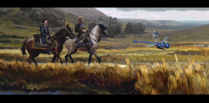 Another early keyframe, pre-casting, Edgin & Holga venture through the Surbrin Valley and Ed catches a glimpse of a sapphire dragonfly #DnDMovie #DungeonsAndDragonsHonorAmongThieves