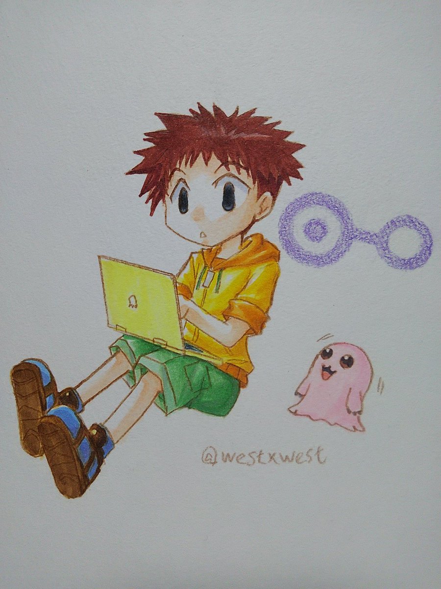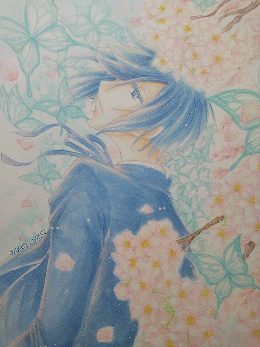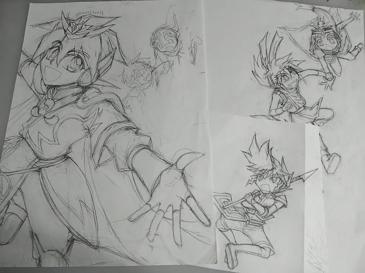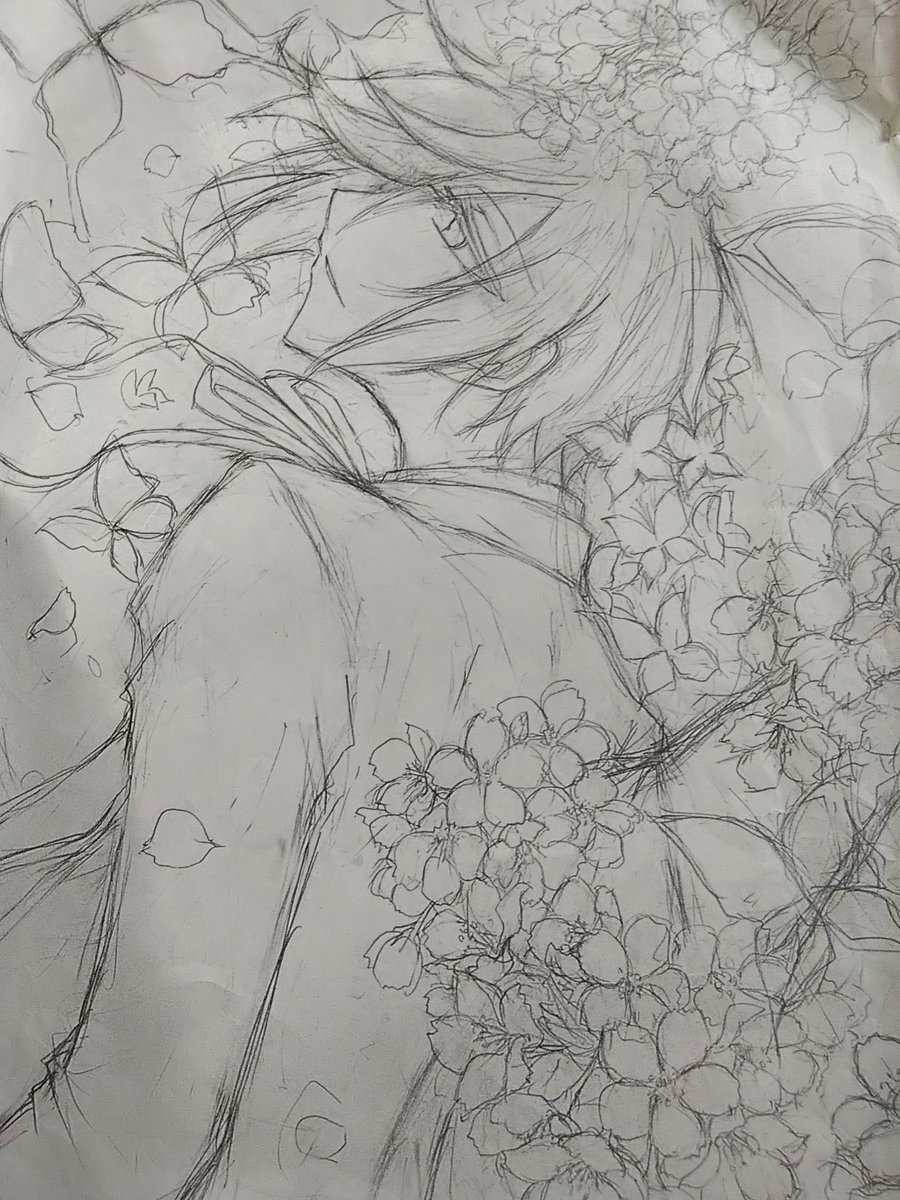#このタグを見た人はラフ画とその完成絵を見せる ラフ画というかがっつり描いてトレス派 いつぞやに描いた約束の日なキタローさん、桜描くの好きだけど毎回大変 ワタルの方は実は3枚分割(爆)、ワタルの手が個人的に上手く描けたなーって消すの勿体無かったから虎王達はサイズ調整も兼ねて別紙(笑)