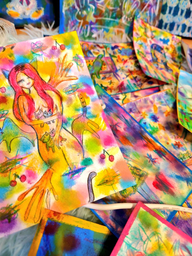ネコニンゲンネコニンゲンねこ #絵かゆ #絵が好きな人と繋がりたい #イラスト好きさんと繋がりたい #色鉛筆画 #アクリル画 #絵柄が好みって人にフォローされたい #ねこ子ねこ子 #ねこ #サイケデリック