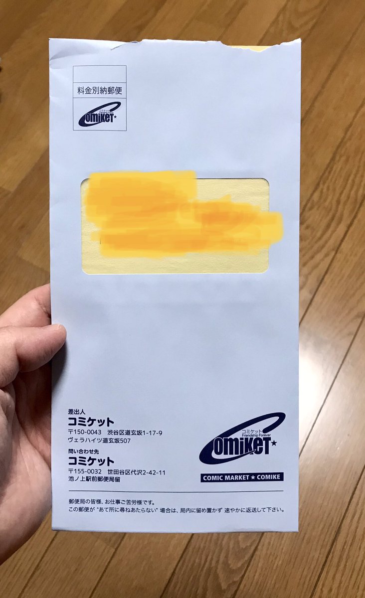 コミケの準備会からサクチケ届いたんだけど、今までのコミケだと、落選通知に使ってた大きさの封筒だから、マジ焦った💦ビックリした〜👓 #C99 #コミケ99 #コミケ #コミケ当落 #冬コミ #コミケット #コミックマーケット #コミックマーケット99
