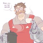 Frick! I forgot it was valentines day… have this of Rein «messing up» his first meeting with Ana by trying to be smooth yet hitting his leg under the table :V (anatomy is hard…. ;A;) #Overwatch #OverwatchFanart #AnaAmari #Reinhardt
