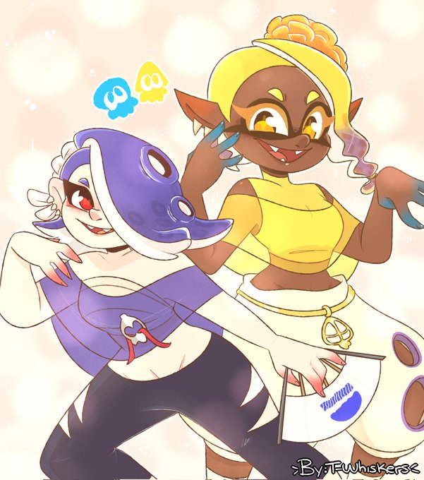 I drew the new idols of Splatoon 3 💙💛"Deep Cut" I really loved their designs, I also think it had been 2 years without me drawing something about splatoon 😵 (PS: sorry I forgot to draw Big Man ;;;;;) #Splatoon #Splatoon3 #Splatoon3fanart #deepcut #Shiver #Frye #nintendo