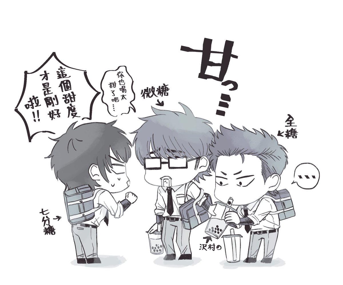 一緒にタピにいた倉御沢 御「お前が飲んだこれ甘すぎない…?」 沢「この甘さこそ丁度いいだ!」