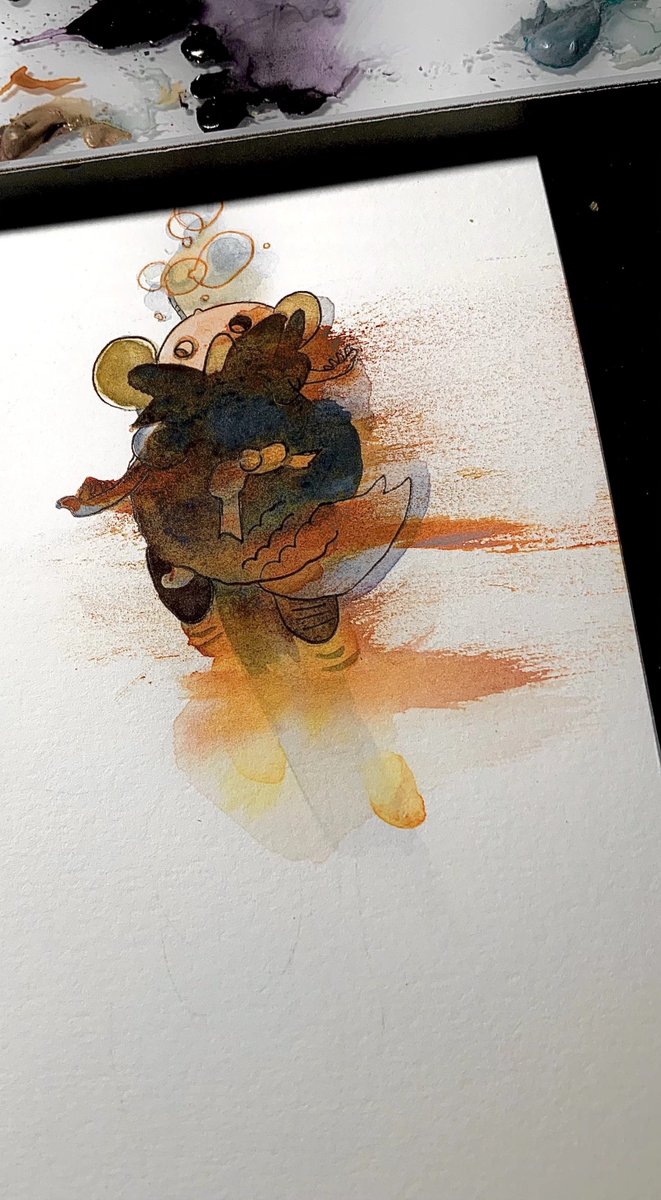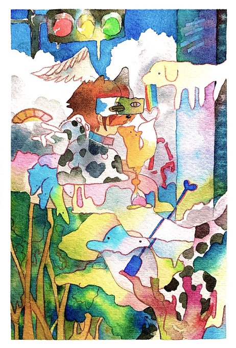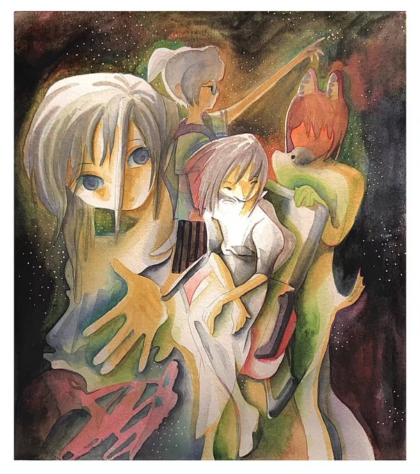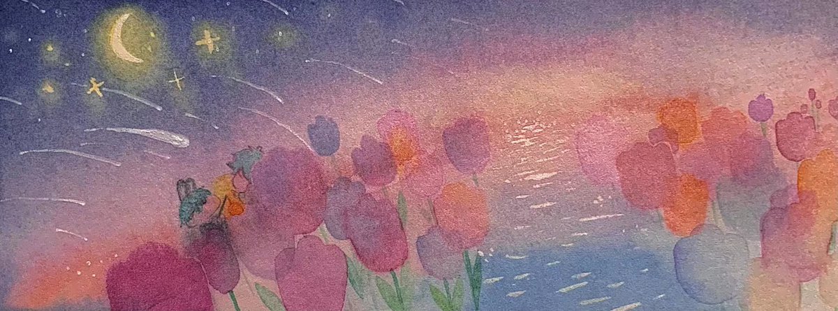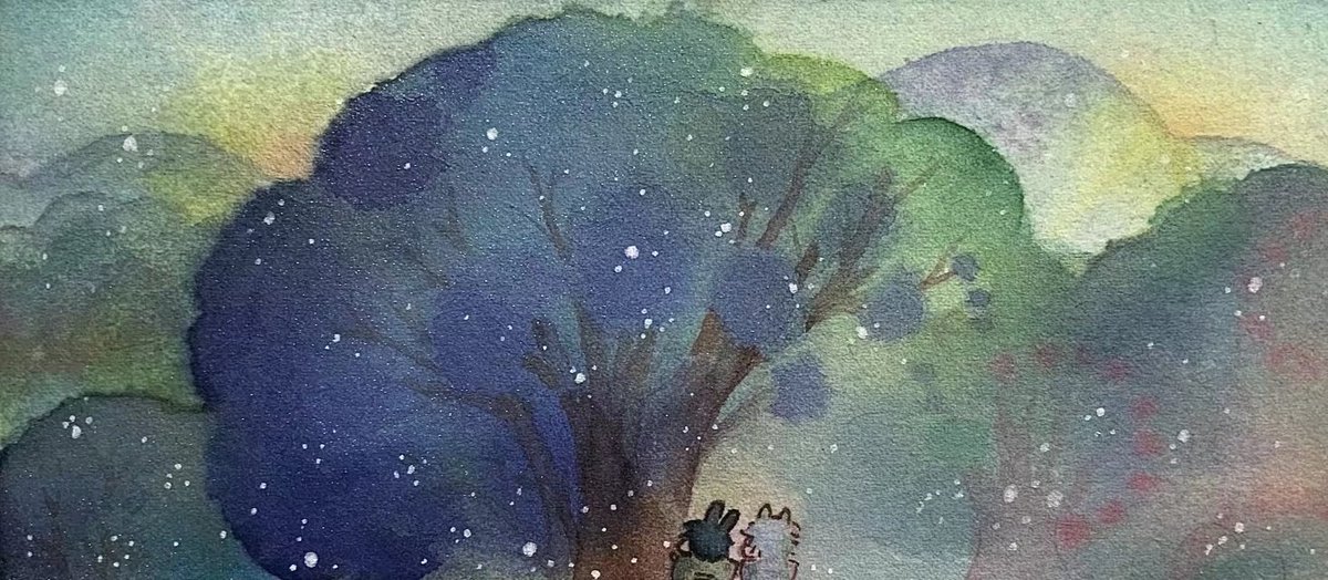 旋转的星空 不曾留 就算见面 也如同秋日的柑橘一般 全都奔向了那结果去 最后期待 不留任何人于盛夏 在美丽的麦穗面前 你也是会被它夺去心跳的 卑微的人啊 下次 也在那葵花田里面等我! #水彩 #Watercolor