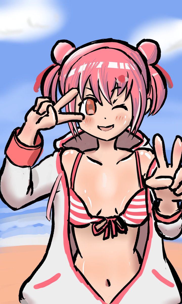 #かにこあーと これは浜辺でダブルピースするかに子ちゃんです