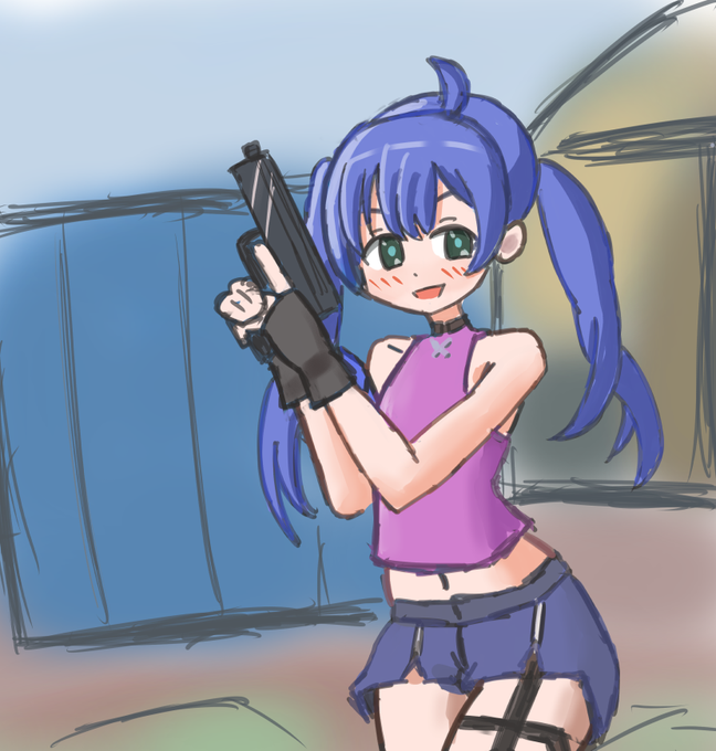 #まてぃあーと 描きました。ハンドガンを構える桜蝦まてぃちゃんを。 誕生日おめでとうございます!