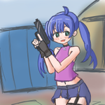 #ちーあーと 描けました。銃を構える勇気ちひろちゃんが。