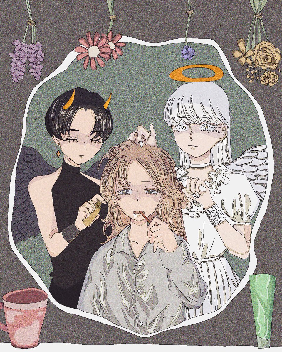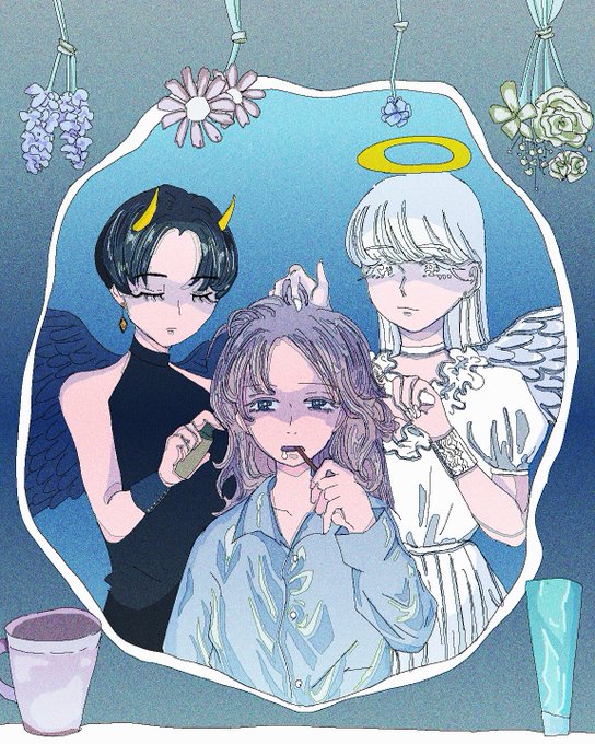 1 7 「ちゃんとやってよね」 色違い #illustraion #illust #イラストレーション #イラスト #女の子イラスト #天使 #悪魔 22/09/18 16:41