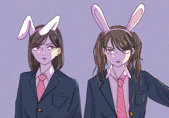 「てめーそれ私の真似してんだろ」 「は?誰がおめーの真似なんてするかよ」 #illustration #illust #イラストレーション #イラスト #うさぎ #兎 #女の子 #女の子イラスト #jk