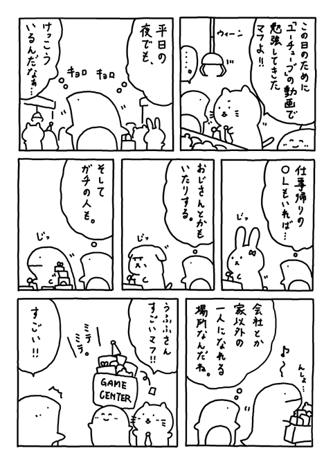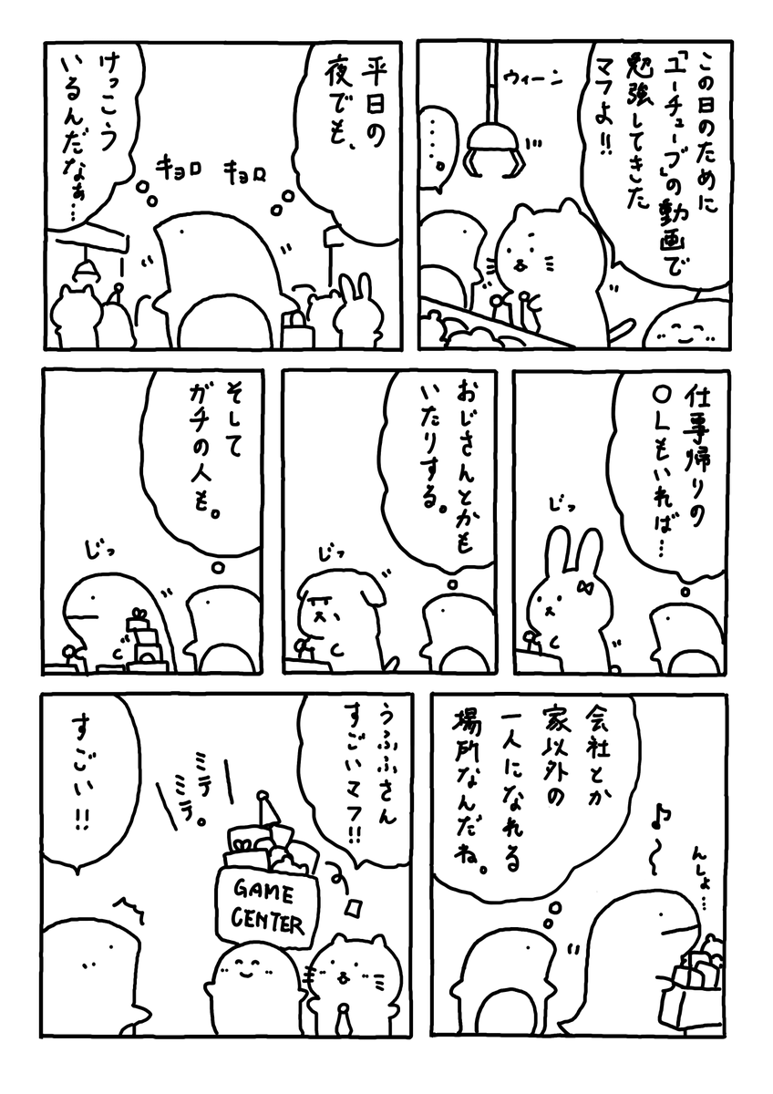 仕事帰り ゲーセンに 行ったことありマフか? #Web漫画 #漫画が読めるハッシュタグ #日常漫画 #ゆるいイラスト #エッセイ漫画 #社内ニート