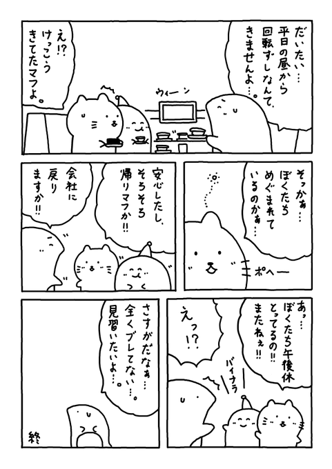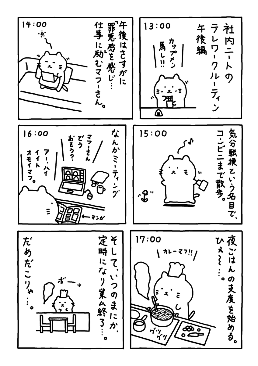 ラーメン編 完 明日から日常に戻りマフ。 #Web漫画 #漫画が読めるハッシュタグ #日常漫画 #ゆるいイラスト #エッセイ漫画 #社内ニート