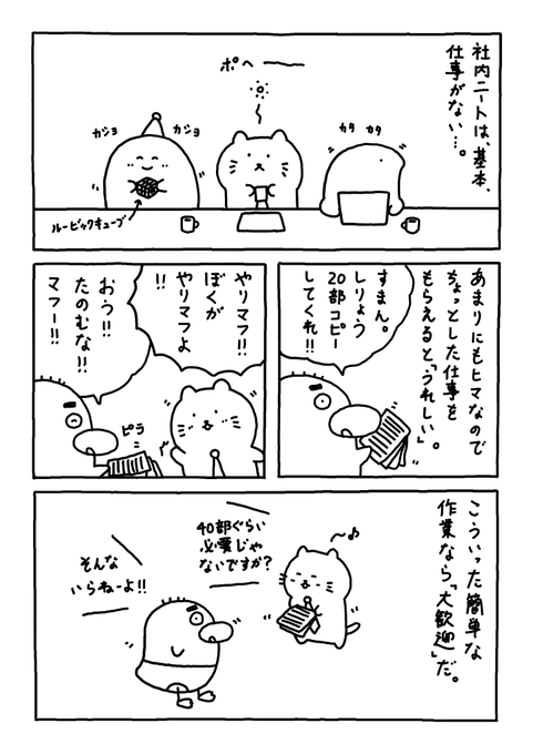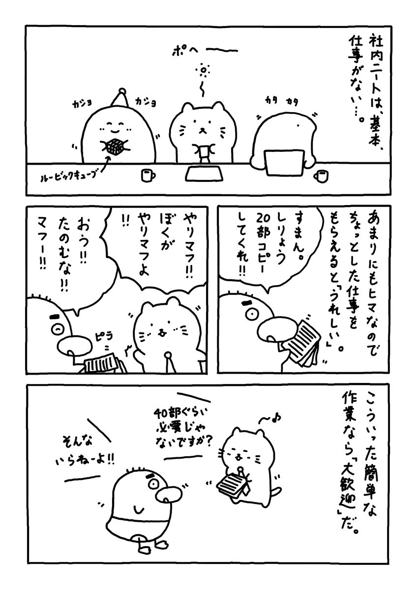 仕事をください。。 ちょうどいいやつね。。 #Web漫画 #漫画が読めるハッシュタグ #日常漫画 #ゆるいイラスト #エッセイ漫画 #社内ニート