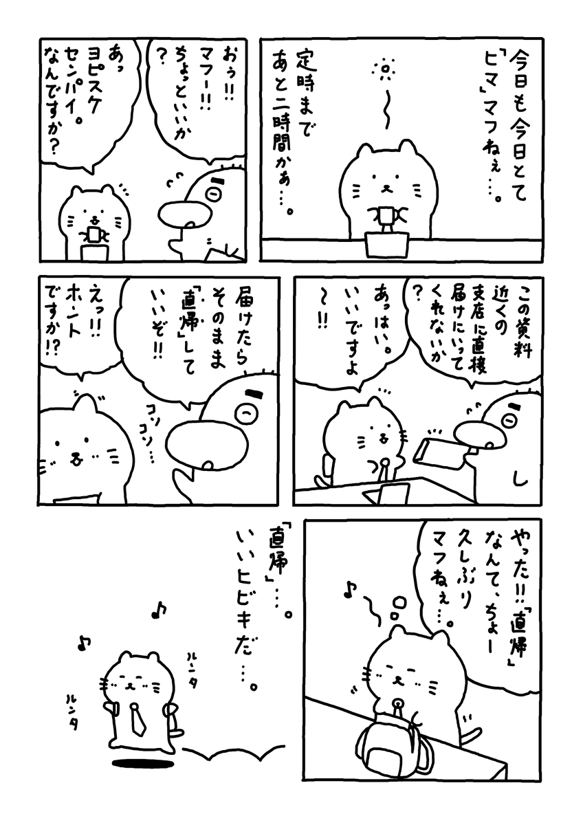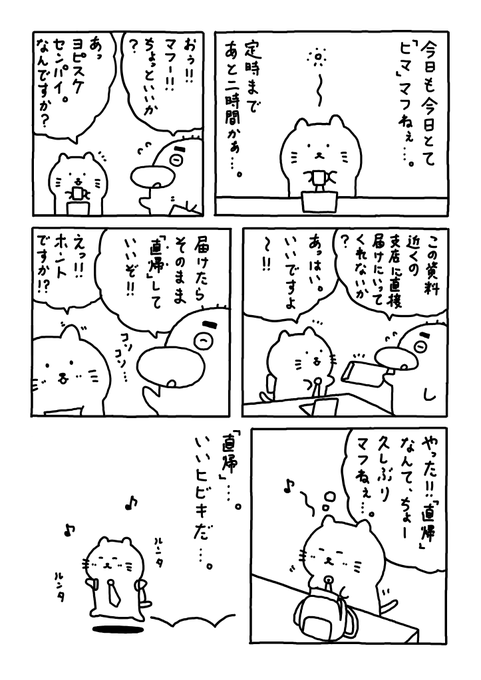 直帰 いい響きマフねぇ。。 #Web漫画 #漫画が読めるハッシュタグ #日常漫画 #ゆるいイラスト #エッセイ漫画 #社内ニート
