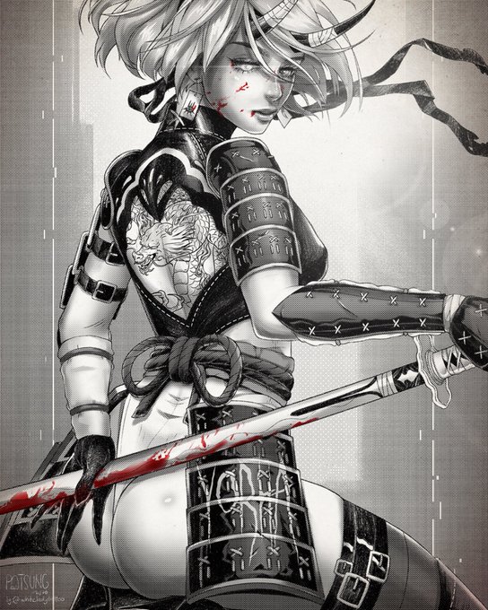 1 8 "Everything that lives is designed to end. We are perpetually trapped...in a never-ending spiral of life and death." —2B in the Prologue. #2B #Samurai 5/6 of my #sixfanarts 20/07/05 09:30