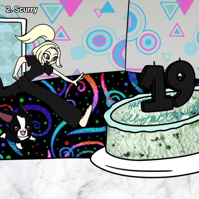 Inktober Day 2: Scurry Today is my 19th Birthday and I scurried with Roxy to see my Mint Cookies& Cream Birthday Cake! 🎉🥳🎂🎀🎁🎈🎊💙 #Inktober #Inktober2022 #Inktober2 #TodayIsMyBirthday #ITurned19