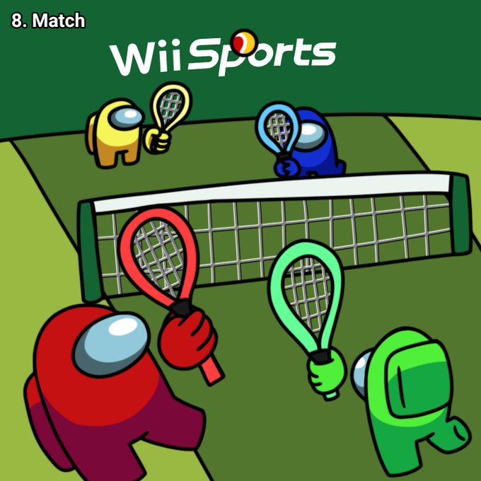Inktober Day 8: Match Tennis Match at the Wii Sports Tennis Court: Crewmates (Front Team) VS. Impostors (Back Team). Who will win? #Inktober #Inktober2022 #Inktober8 #AmongUs #WiiSports #WiiSportsTennis